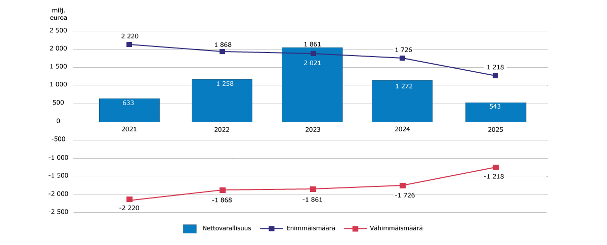 | Nettovarallisuus | 2021 | 2022 | 2023 | 2024 | 2025 | Muutos euro | Muutos % |